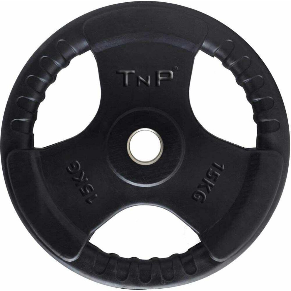 TnP Accessories. Olympic Weight Plates Rubber Coated Cast Iron Weights Plate Set – Tri Grip Radial – 1.25kg 2.5kg 5kg 10kg 15kg 20kg 25kg TriGrip Disc (15KG Single)