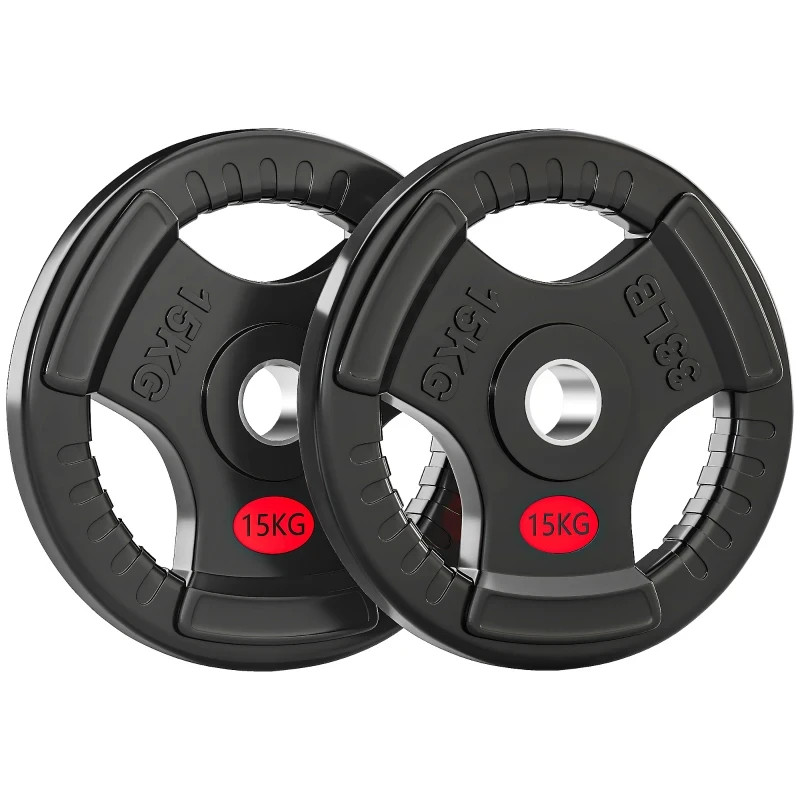 2 x 15kg Olympic Weight Plates, 2"/5cm Weight Plate Discs with Tri-Grips