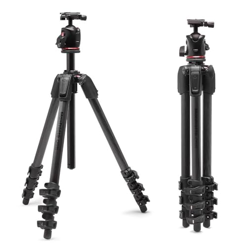 Manfrotto 055XPRO AS, 4-Section Carbon Fibre Camera Tripod, Photo-Kit with XPRO Ball Head, 90 Degree Column, 15kg Load, Arca-Swiss Plate, for DSLR/Mirrorless, Tripod for Camera, Photo Shooting Support