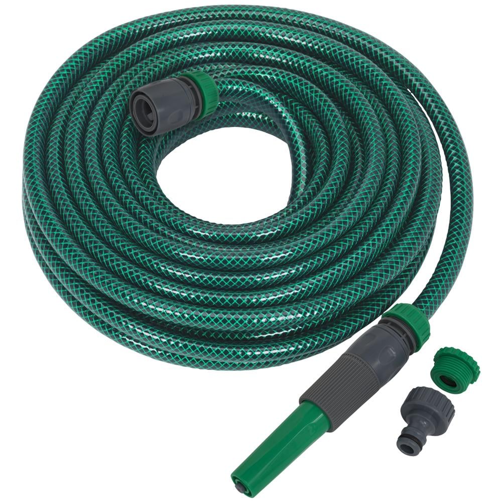 Sealey Garden Hose Pipe with Fittings 1/2" / 12.5mm 15m Green