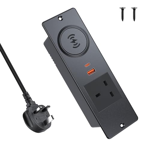 Recessed Power Socket with 15W Wireless Charger, Haiaoyyds Desk Power Socket with UK Plugs, 2 USB Ports, 2M Cable, Furniture Recessed Socket for End Table, Sofa, Cabinet