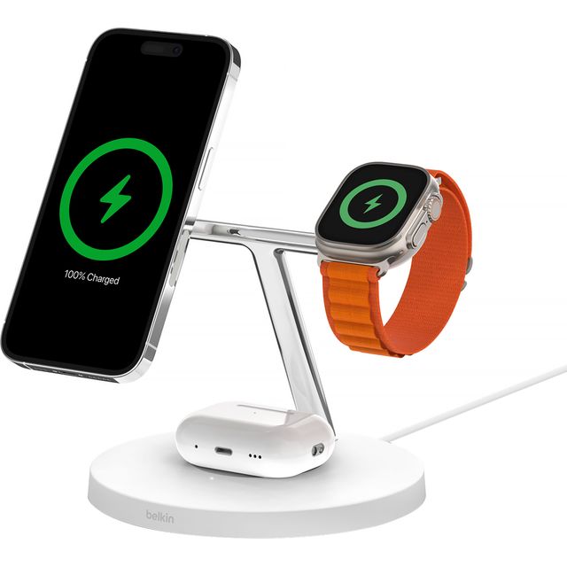 Belkin BoostCharge™ Pro 3-in-1 15w Wireless Charger with Official MagSafe Charging - White