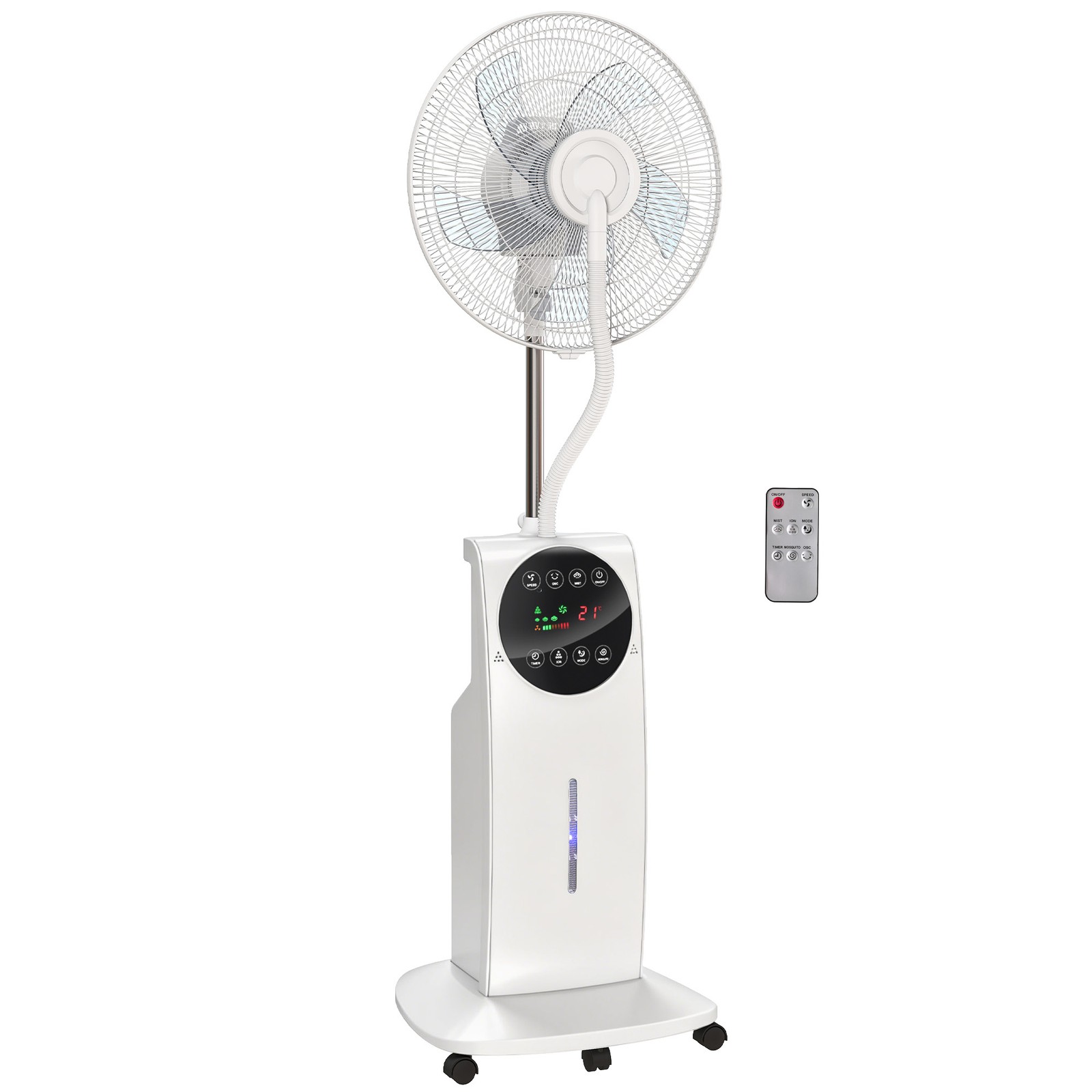 HOMCOM 16" Pedestal Stand Fan, 3 Speed 3 Mode, 85 Degree Oscillation, LED Panel, Remote Controller, Height Adjustable for Living Room, Bedroom, Garage, Office, Black and White