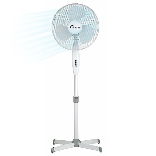 1ABOVE 16" Fan, Pedestal Stand High Performance 140cm Adjustable Height, 3 Speed Setting, Extra Wide Cross Base, Oscillating, Tilting Head (WHITE)