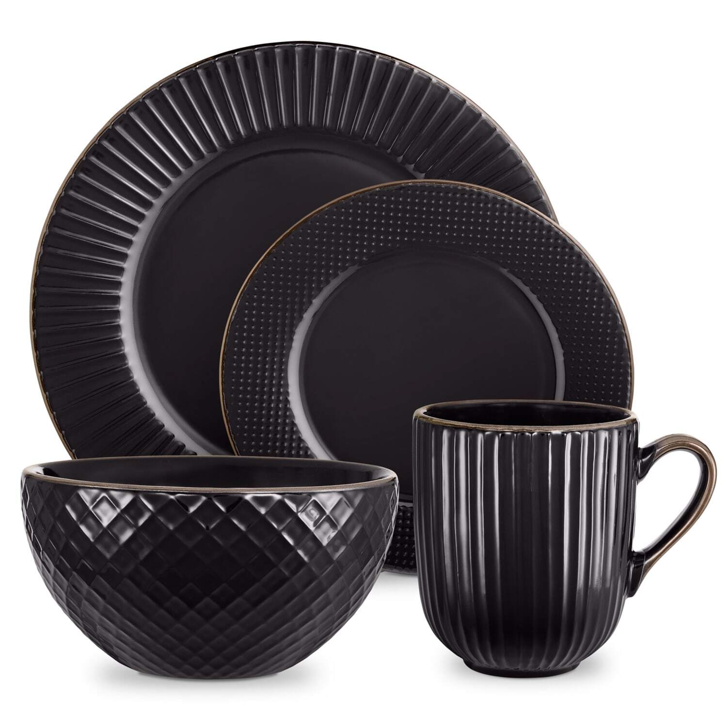 Tower Stoneware 16-Piece Empire Dinner Set - Black, none