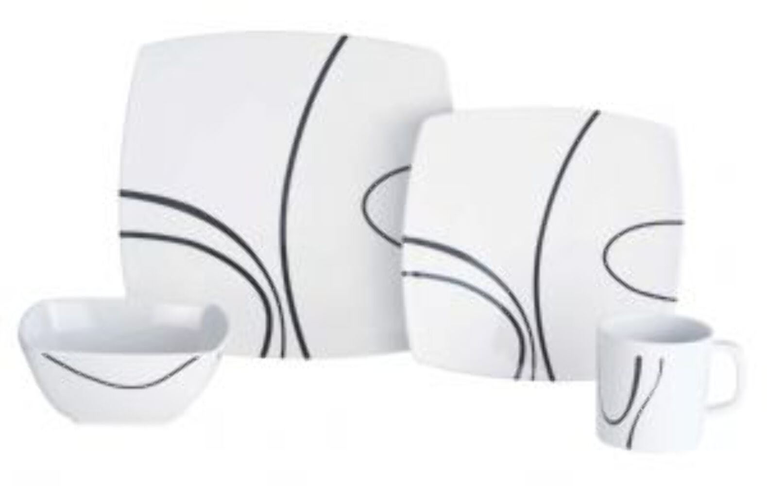 Creative Tops 16 Piece Vivienne Dinner Set, Service for 4 Dinnerware Set with Elegant Design, 16 Pieces, Black & White