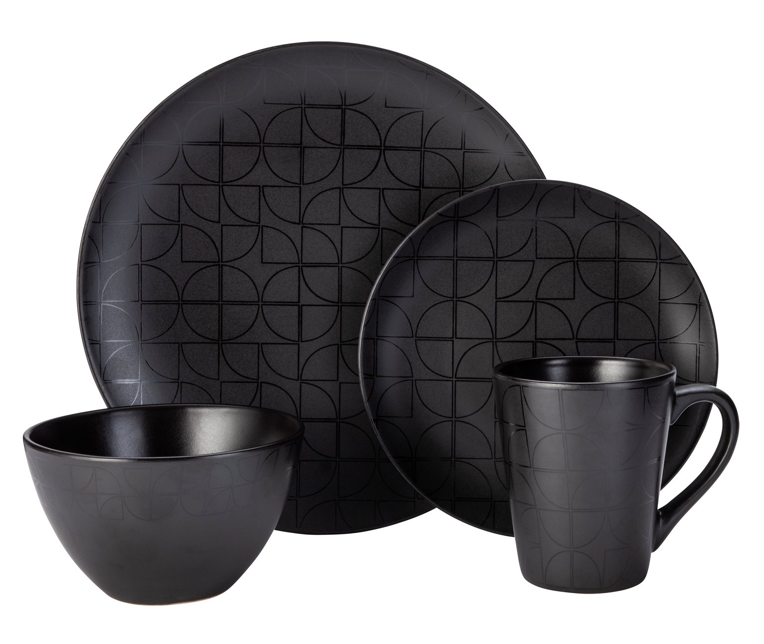 Argos Home Geo 16 Piece Stoneware Dinner Set - Black