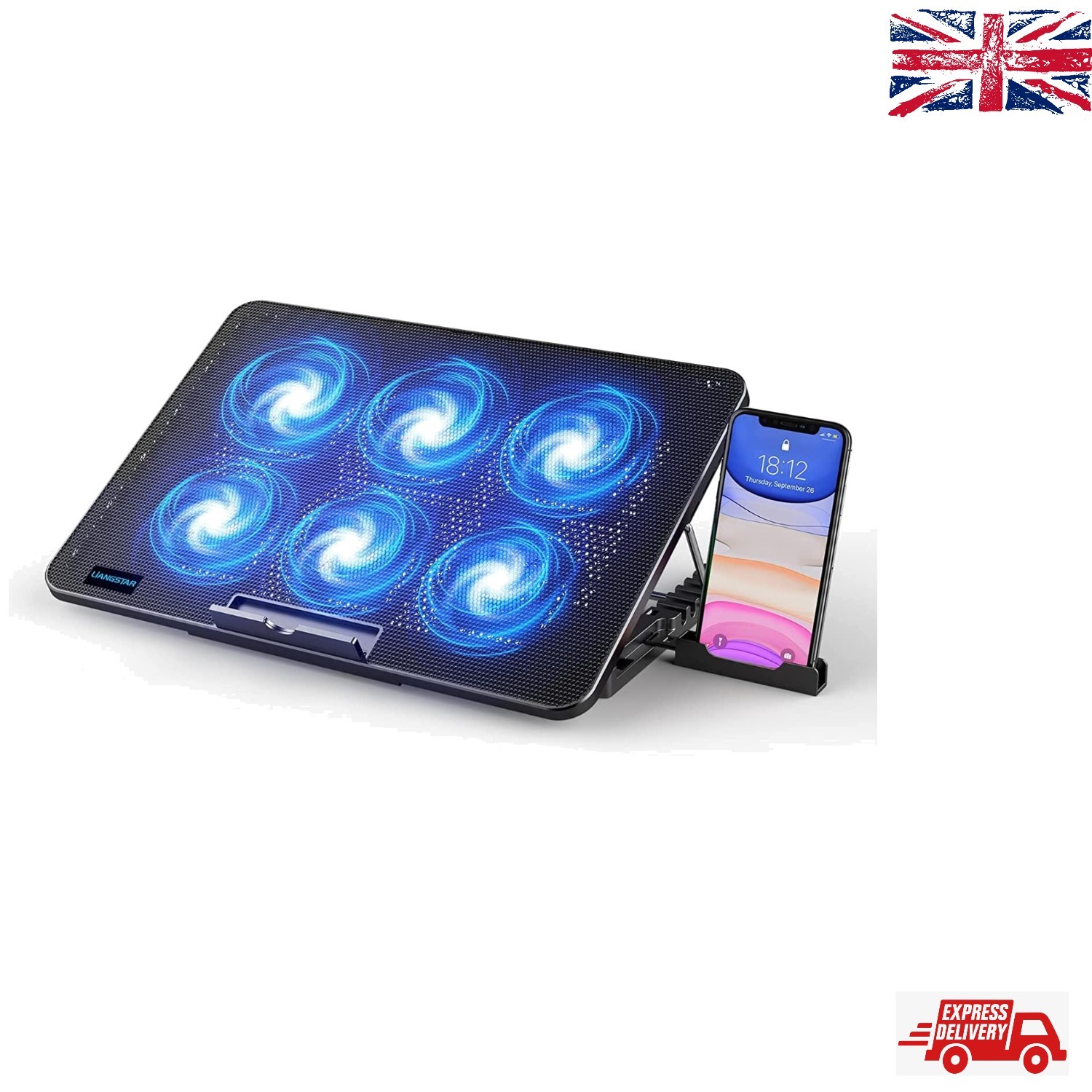 Portable Laptop Cooling Stand w/ 6 Fans, Dual USB Ports, for 12-17 Inch Laptops