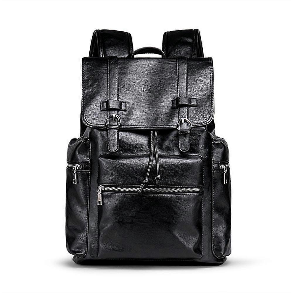 Black Men's Leather Laptop Backpack Travel Rucksack Business Waterproof Suitable for 17 inch Laptops