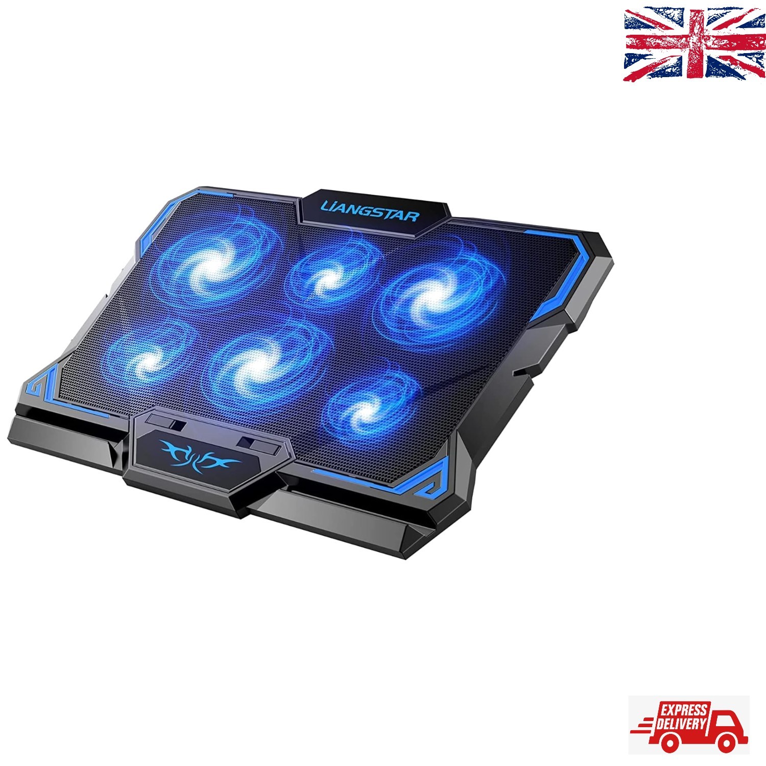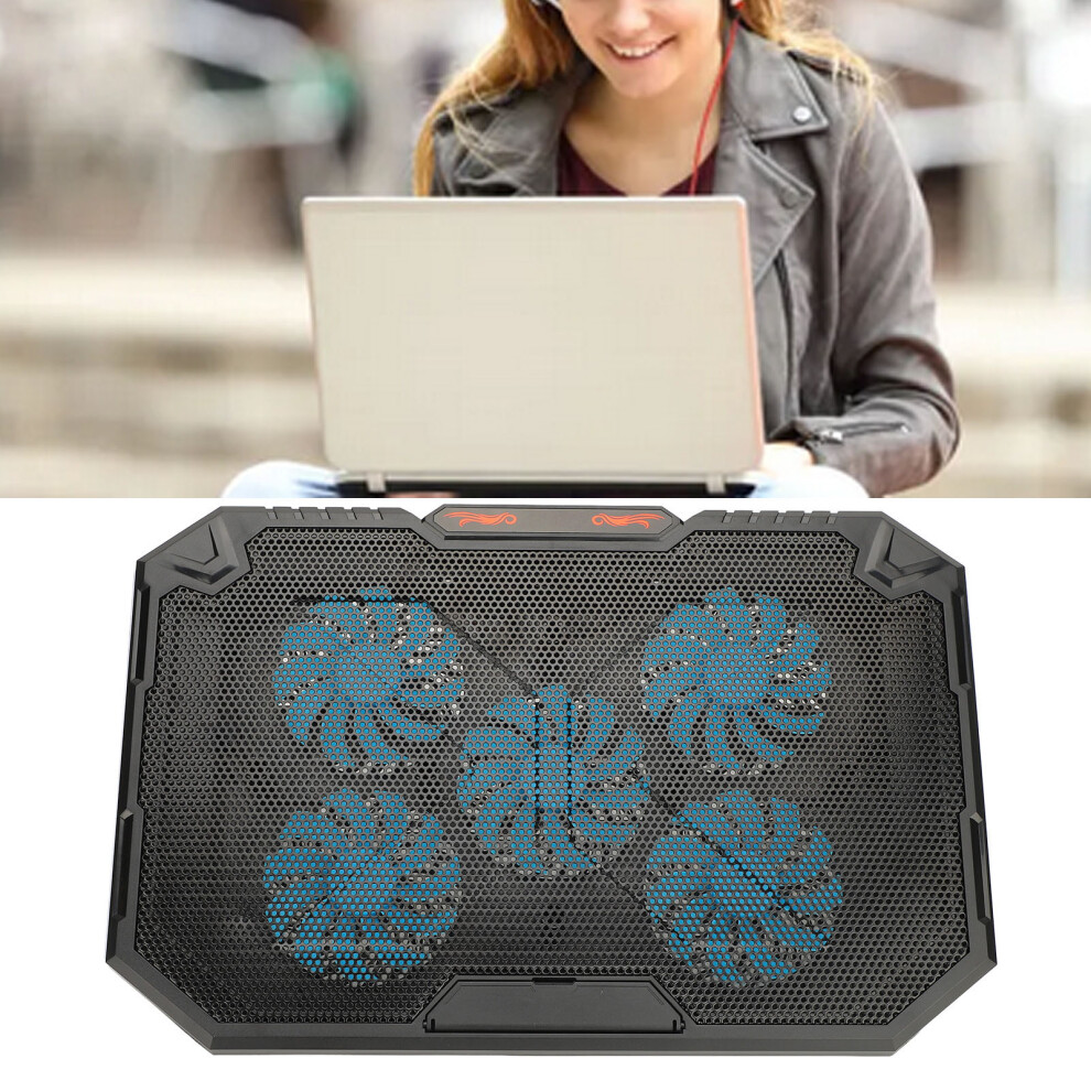 ENHANCE Gaming Laptop Cooling Pad Stand with LED Cooler Fans, Adjustable Height, and Dual USB Port for 17 Inch Laptops - 5 Ultra Quiet High Performance Fans 2630 RPM and Built-In Bumpers - Blue