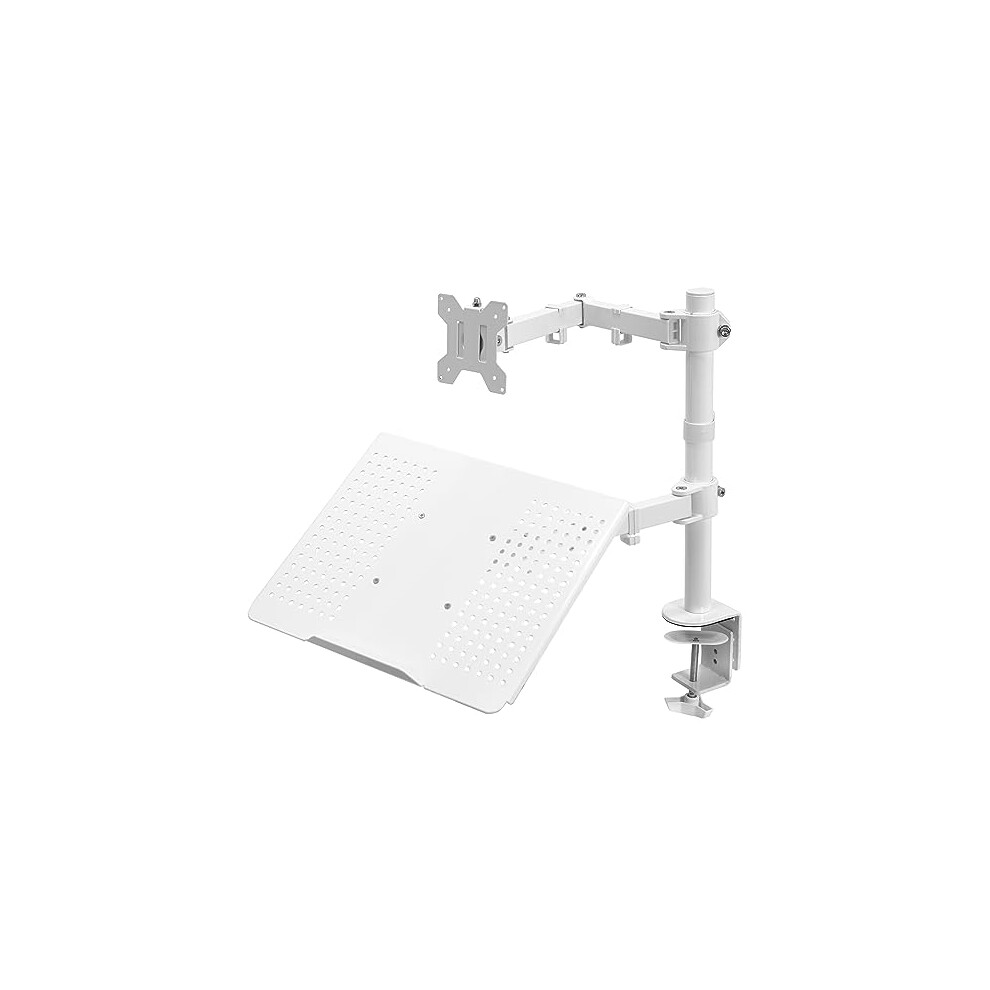 VIVO Fully Adjustable 13 to 32 inch Single Computer Monitor and Laptop Desk Mount Combo, Stand with Grommet Option, Fits up to 17 inch Laptops, White