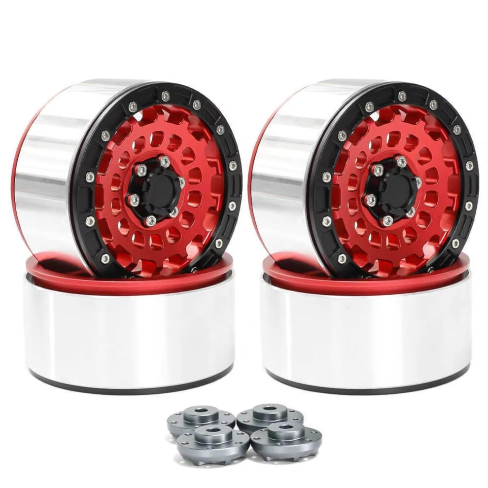 RC Beadlock Wheels 2.6 Inch Red Metal Rims 12mm 17mm Hex Fit for 1/10 RC Cars Axial SCX10 TRX4