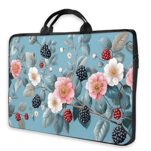 HSDEXWRI 17 Inch Tablet Sleeve, Blackberry Floral Blue Vintage Case, Botanical Art Bag with Zip Pocket, Shockproof Canvas Protective Cover for Women & Professionals