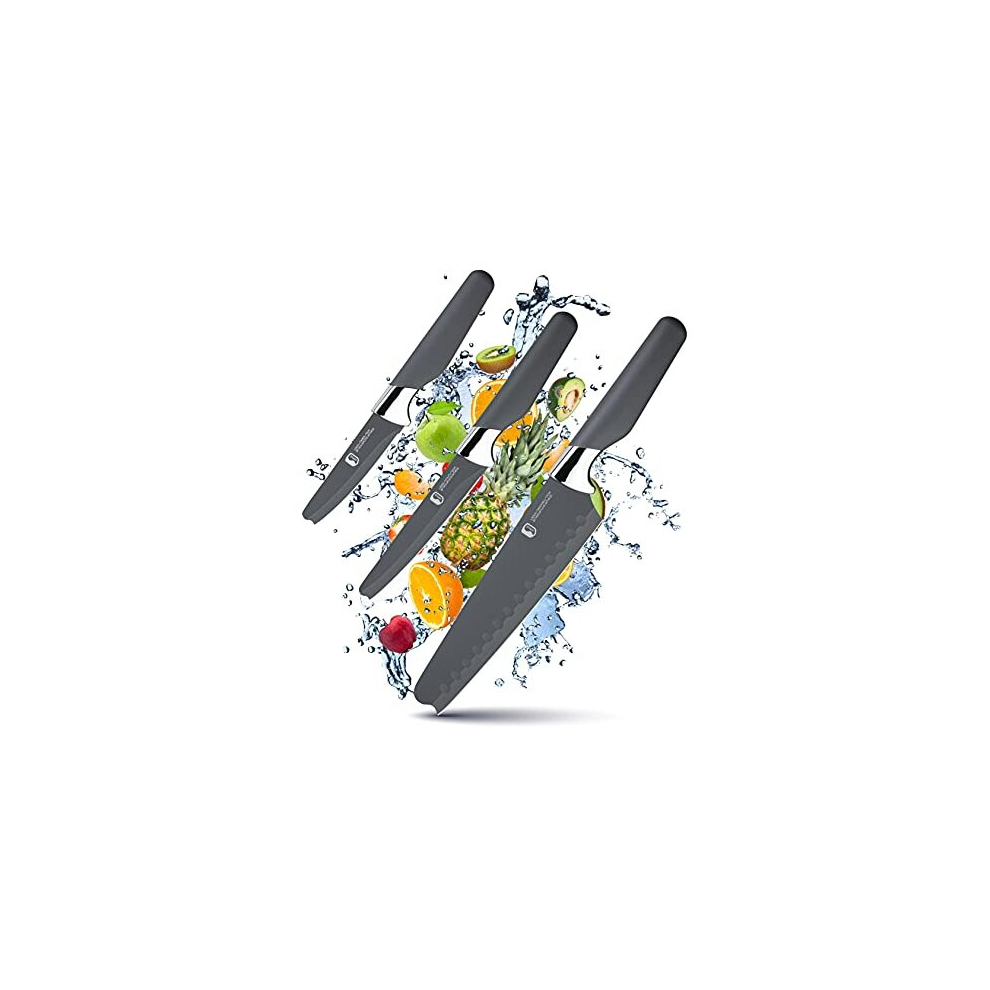 Grand Maitre Santoku Knife Forged Extra Sharp Stainless Steel 17 cm Fluted Edge Black Dishwasher Safe