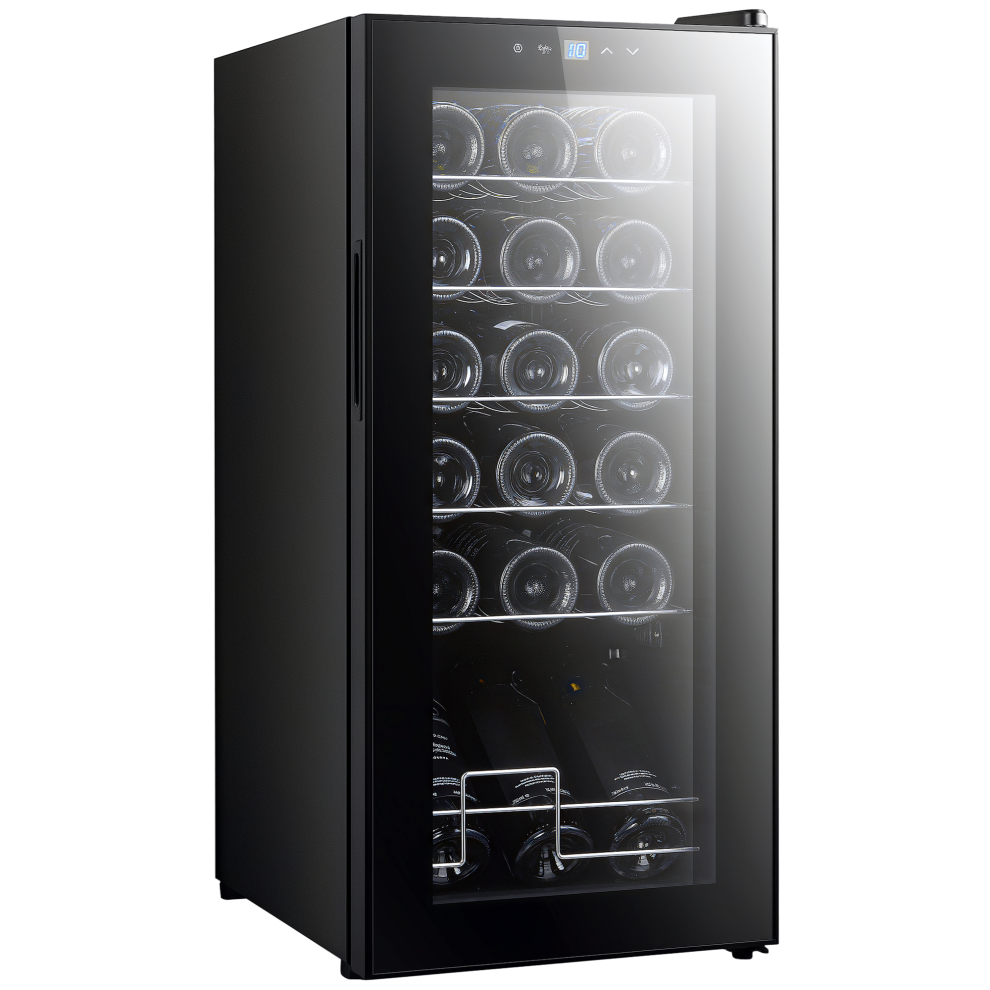 Wine Cooler 28 Bottle Fridge, 5-18°C Touch Control, LED, Only 39dB - Black