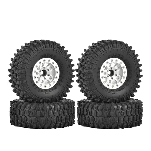 KEEDA RC 78 mm Tyres and Alloy 1.55 Inch Beadlock Wheels Rims for 1:10 RC Crawler Car Tamiya CC01 CC02 LC70 MST JIMNY AX90069 D90 (A Silver), K-1.55ATIRE8ORIM-WHITE
