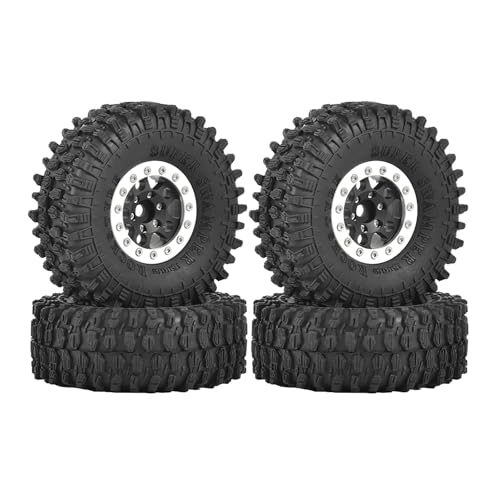 GTFRUQAS RC Tires Compatible With SCX24 For TRX4M For FCX24 Enduro24 1/18 1/24 RC Car Parts 4Pcs Aluminum Alloy 1.0 Inch Beadlock Wheel Rims Rubber Tyres(Black)