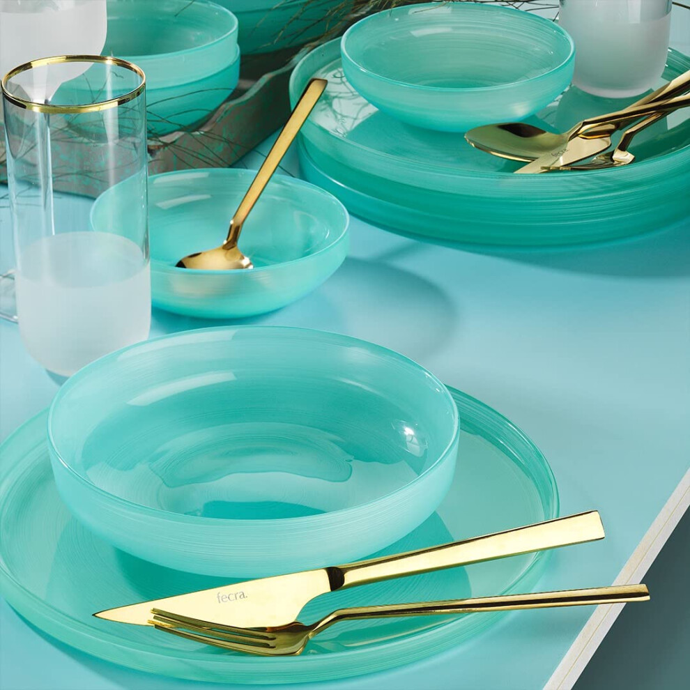 Fecra Circle 18 Piece Glass Dinner Set for 6 People, Cyan Blue