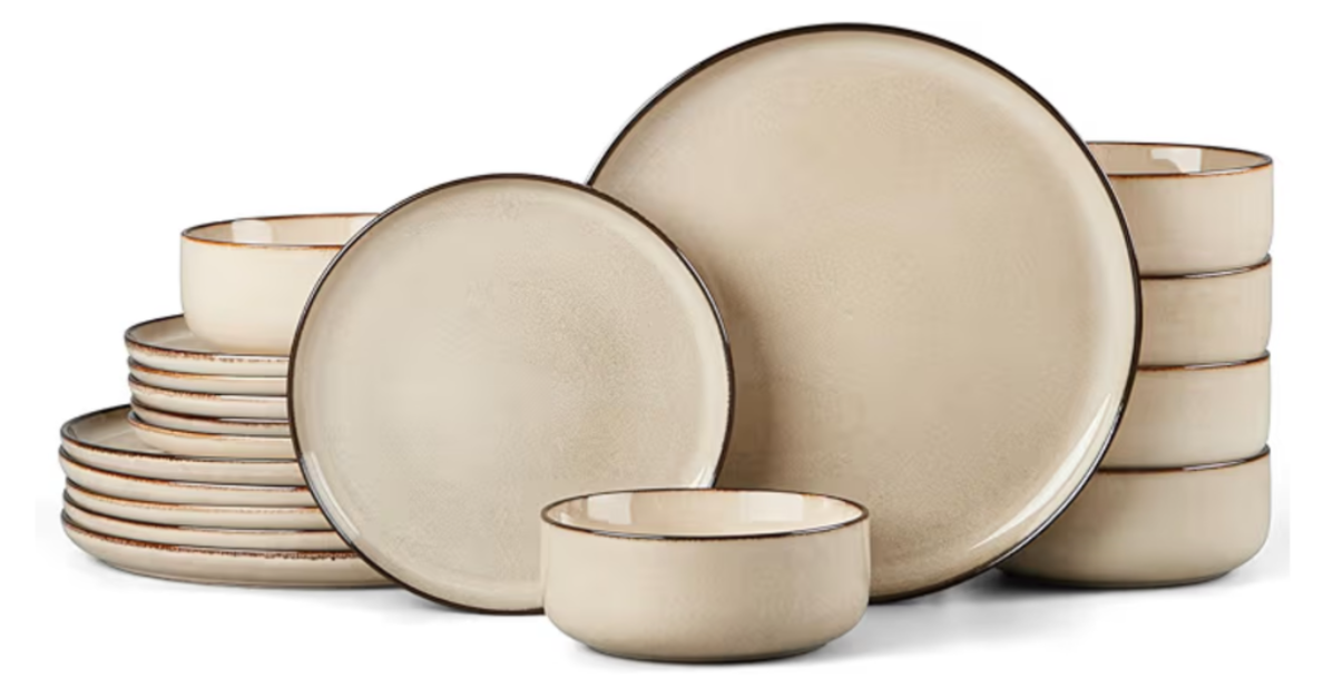ELBA 18 Piece Dinner Set for 6, Durable Stoneware Plates and Bowls for Everyday