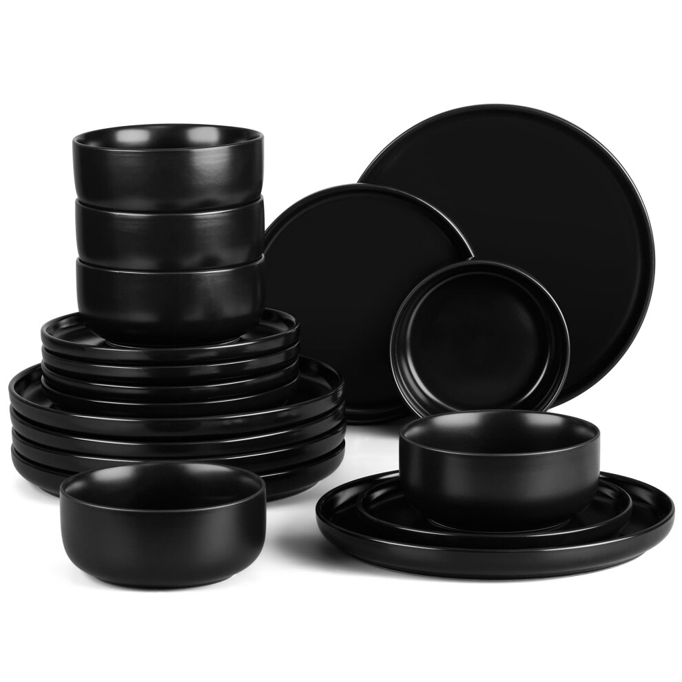 DV-PLAYA-BK-18-ES | vancasso Playa Black 18-Piece Stoneware Dinner Set, 6 Place Settings, Matte Glaze, Modern Dinnerware