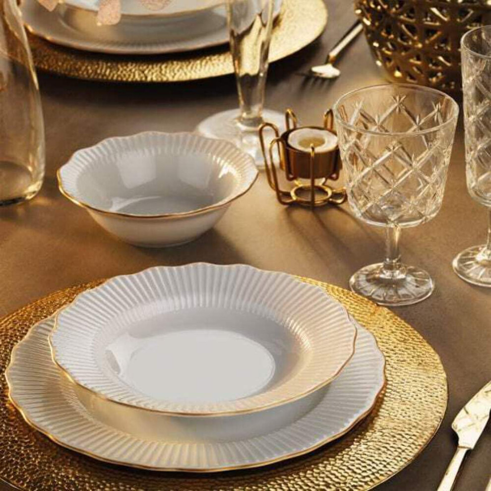 Porland Frilly 18 Piece Dinner Set for 6 People, Gold