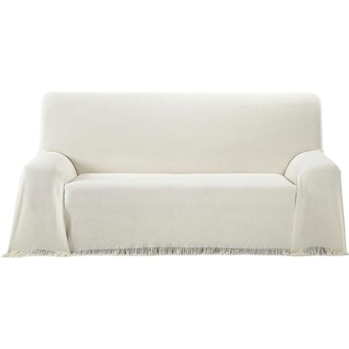 ECOMMERC3 | Multipurpose Bedspread Size 180 x 260 cm for Sofa or Bed – Foulard Multi-Purpose Extra Soft Touch Ecru