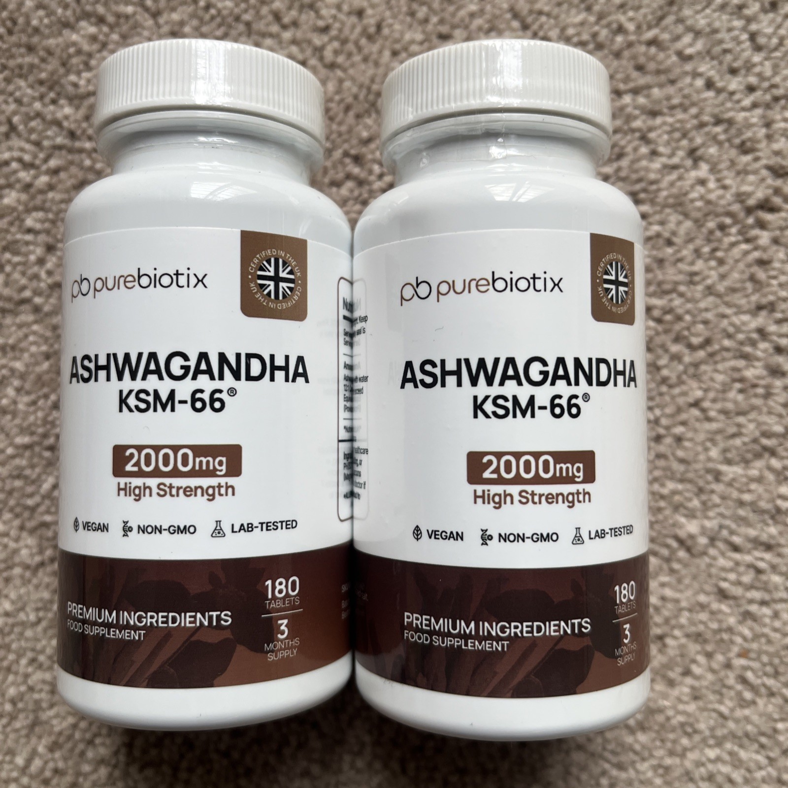 2 x 180 Tablets PB Purebiotix Ashwagandha KSM-66. 2000mg High Strength. Free P&P