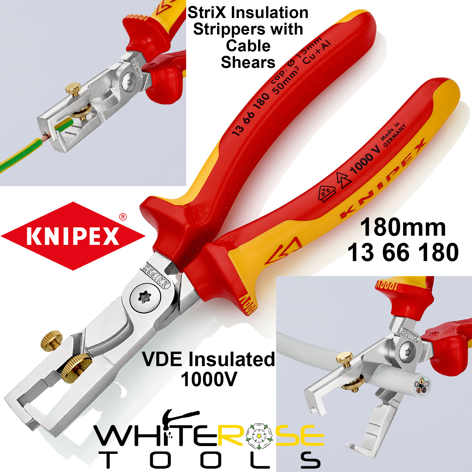 Knipex StriX Insulation Wire Stripper Cable Shears 180mm VDE Insulated 13 66 180