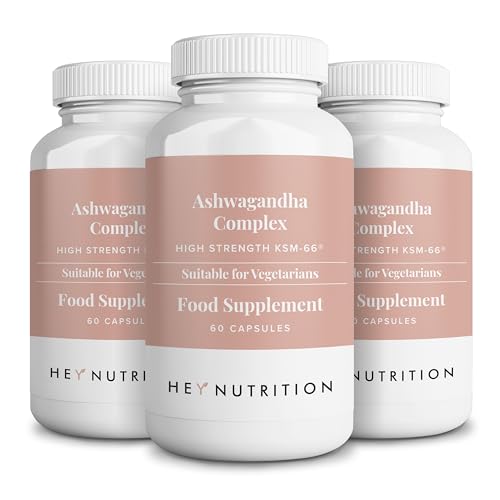 Hey Nutrition Ashwagandha Complex 9000mg Supplement - High Strength KSM-66 - Boosts Mood & Energy - Reduces Stress & Anxiety - UK Manufactured - All Natural, Non-GMO - 3 Pack - 180 Vegetarian Capsules
