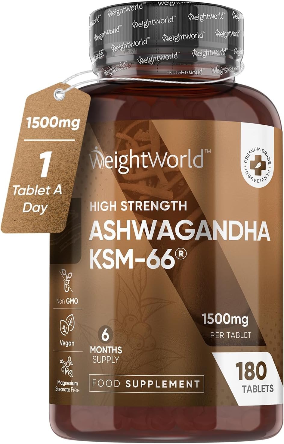 Ashwagandha KSM-66 1500mg 6 Months Supply 180 Tablets 1 Tablet per Day Easy