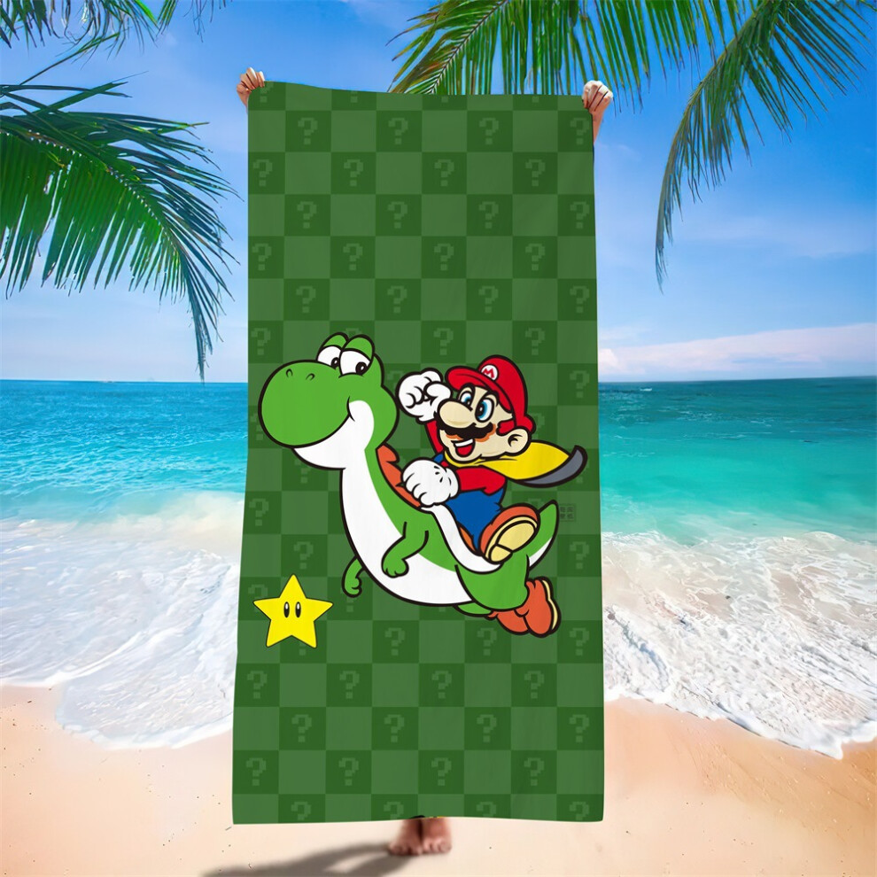 (66, 180x90) Cartoon/Anime Mario Beach Towel Water Absorbent Game Super Mario Merchandise European and American Style Bath Towel Microfiber