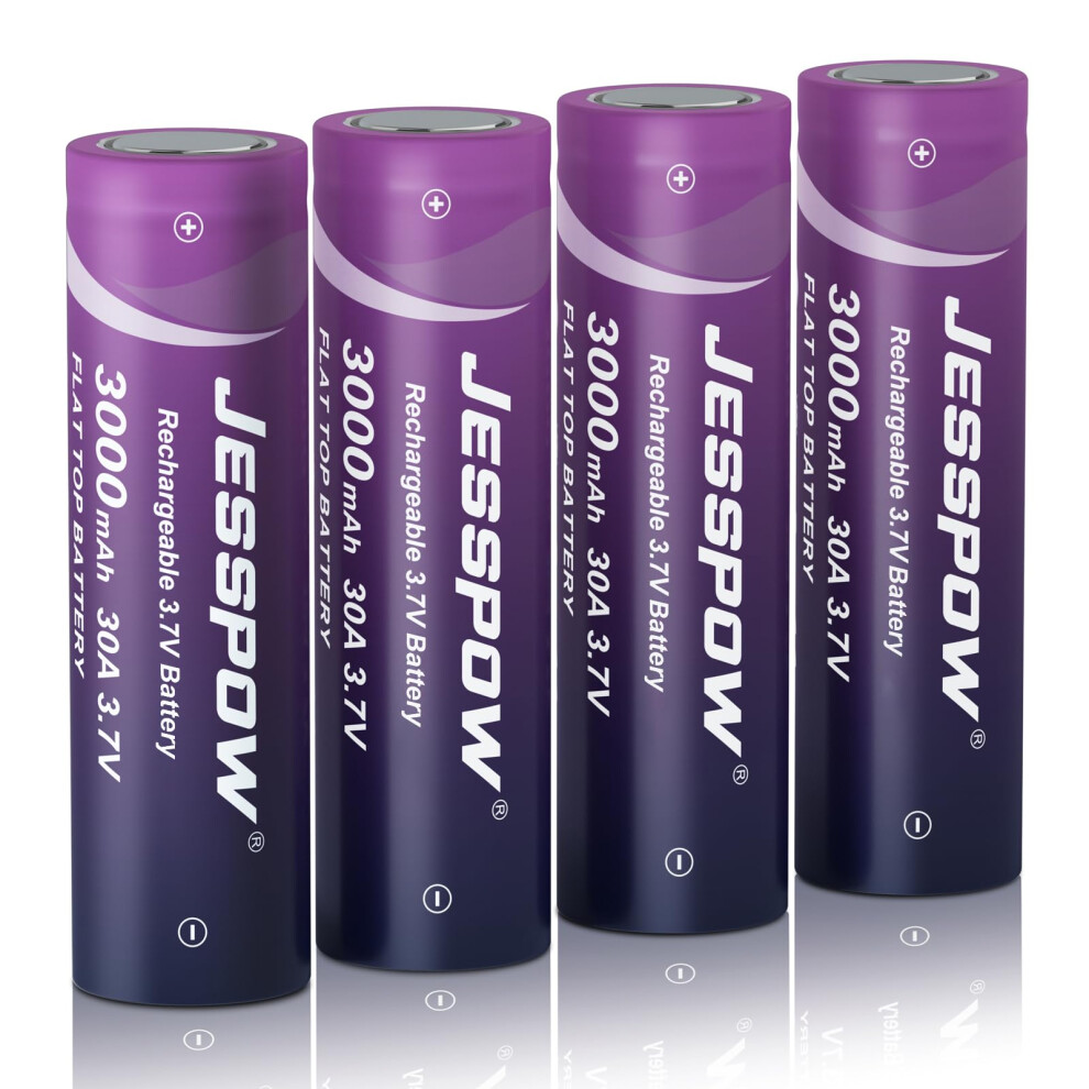 3.7V 18650 Rechargeable Batteries Flat Top, 30A, 3000mAh Long-Lasting Power Batteries for flashlights, headlamp, telectronics devices (4 pack)