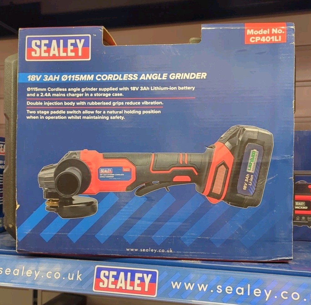Sealey Cordless Angle Grinder Red 115mm 18V with 3Ah Battery and Charger