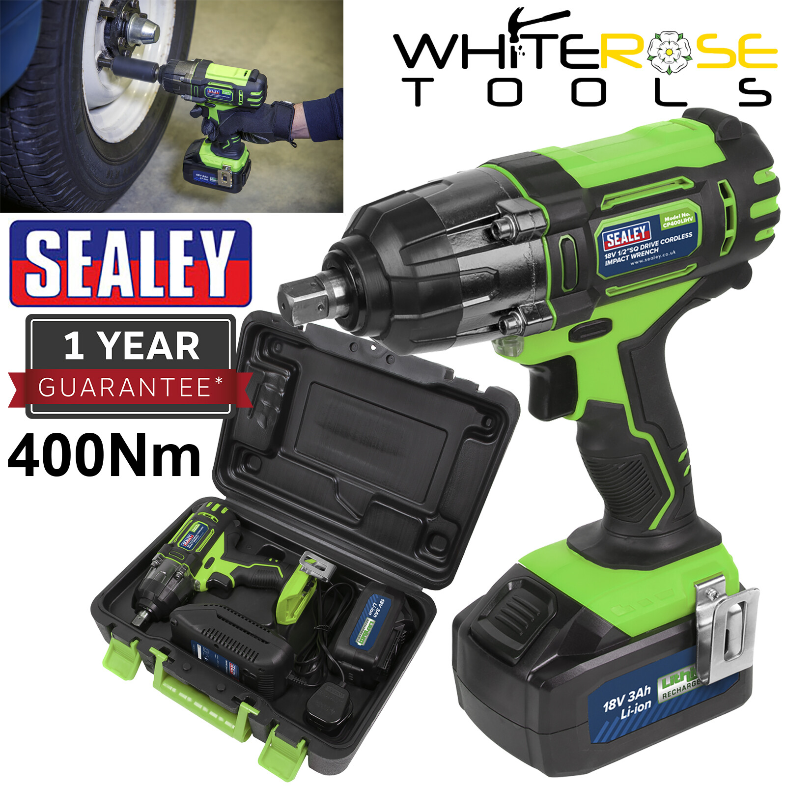 Sealey CP400LIHV 18V 3Ah Li-ion 1/2InSqDr Impact Wrench Kit Hi-Viz Green