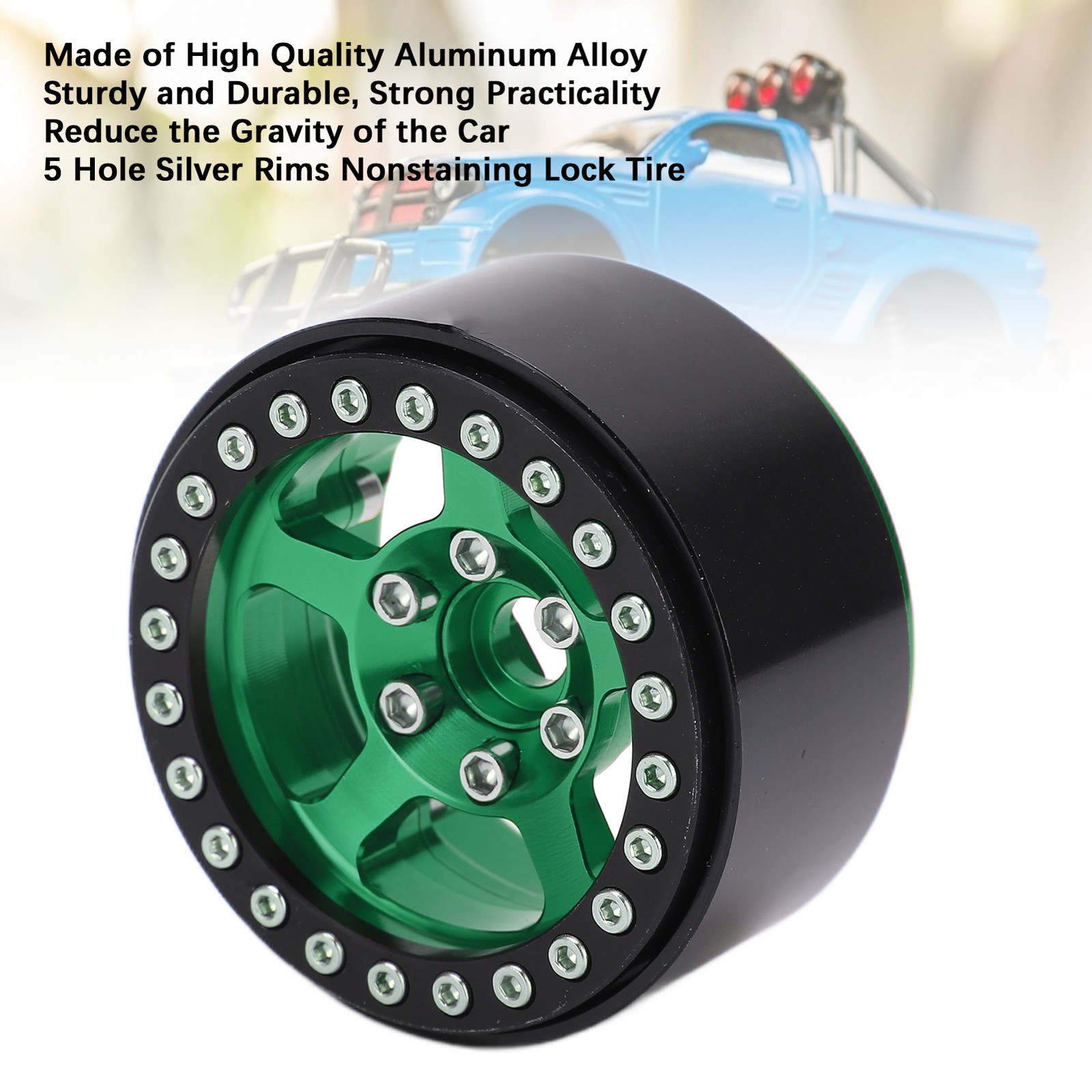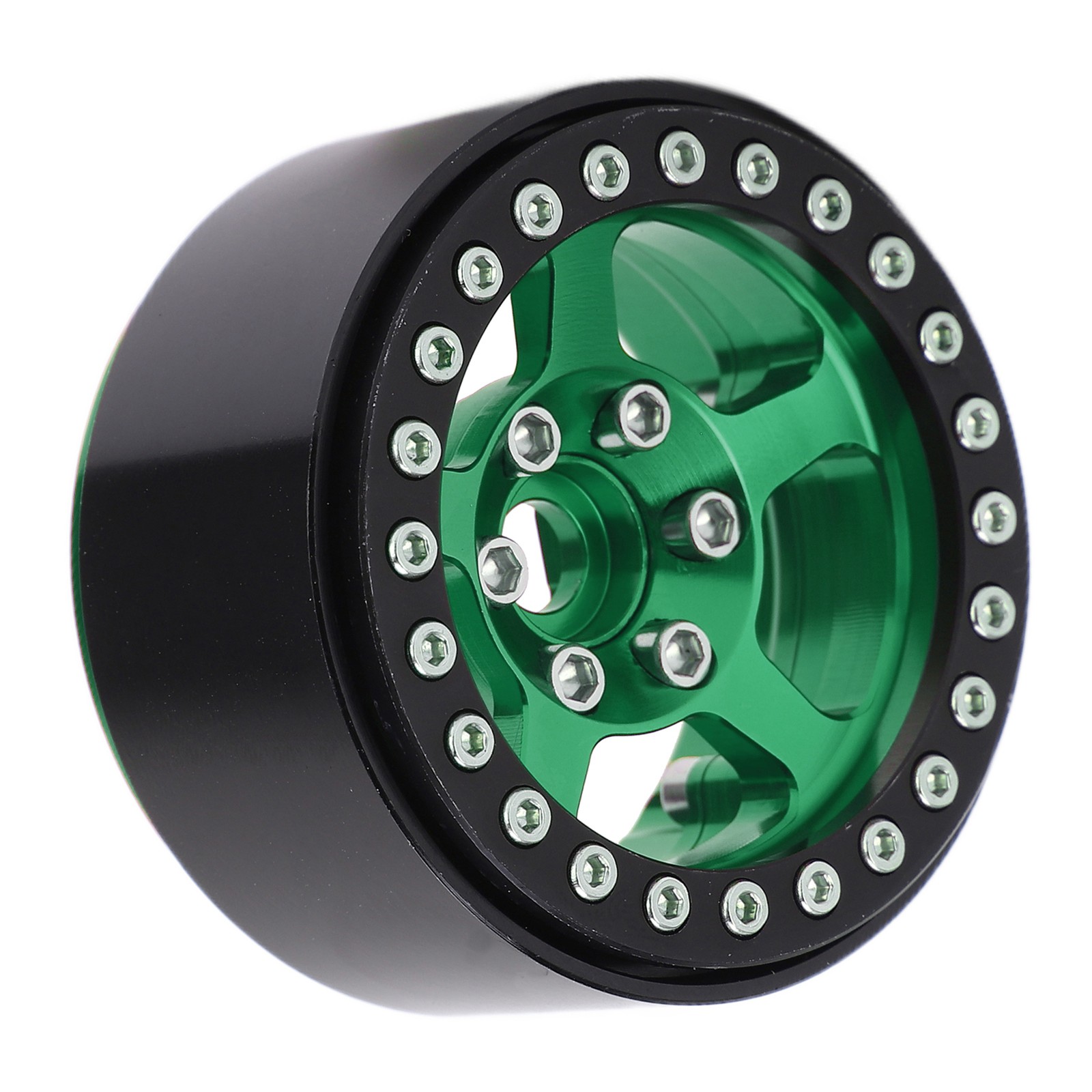 Fluorescent Green 1.9 Inch Beadlock Wheels Aluminum Alloy 5 Hole Silver Rim FIG