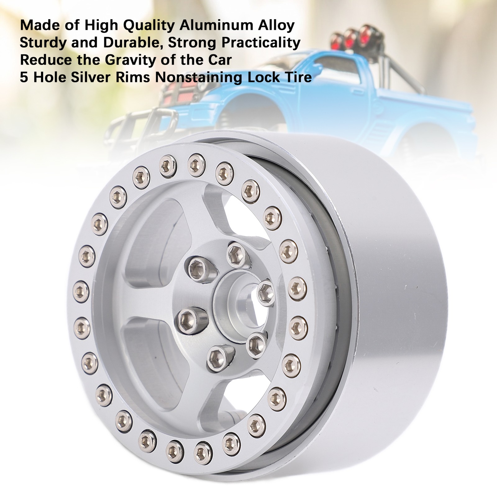 1.9 Inch Beadlock Wheels Aluminum Alloy 5 Hole Silver Rims Non Staining Lock