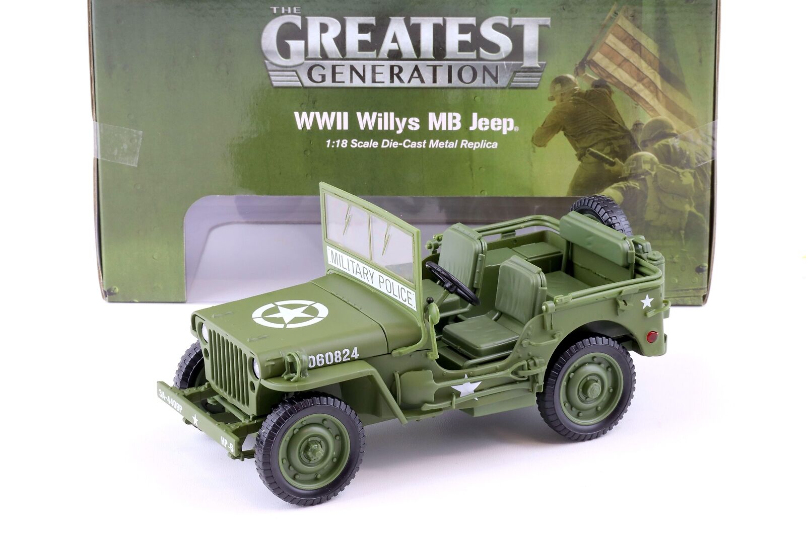 1:18 Car World 1941 WWII WILLYS MB JEEP Military Police US Army Green Olive