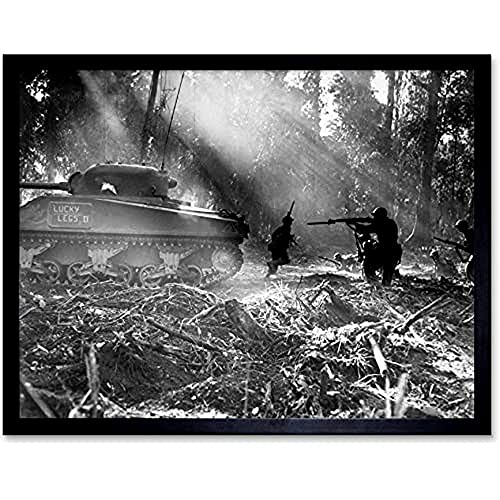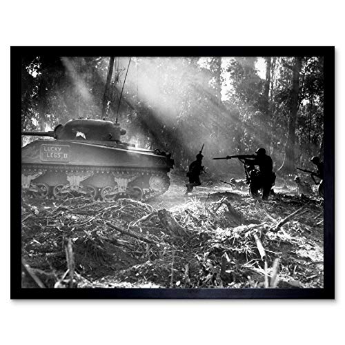 War WWII USA Battle M4 Sherman Tank 1944 Photo Art Print Framed Poster Wall Decor 12x16 inch