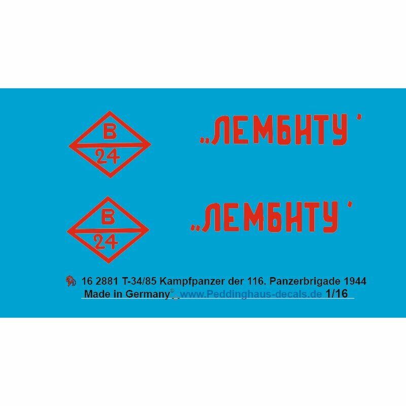 Peddinghaus Decals 1220002881 - T34/85 Battle Tank Der 116 Armored Brigade 1944