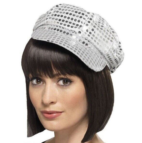 Adult 1960s 1970s Disco Sequin Fancy Dress Hat 70s Cap Silver by Smiffys
