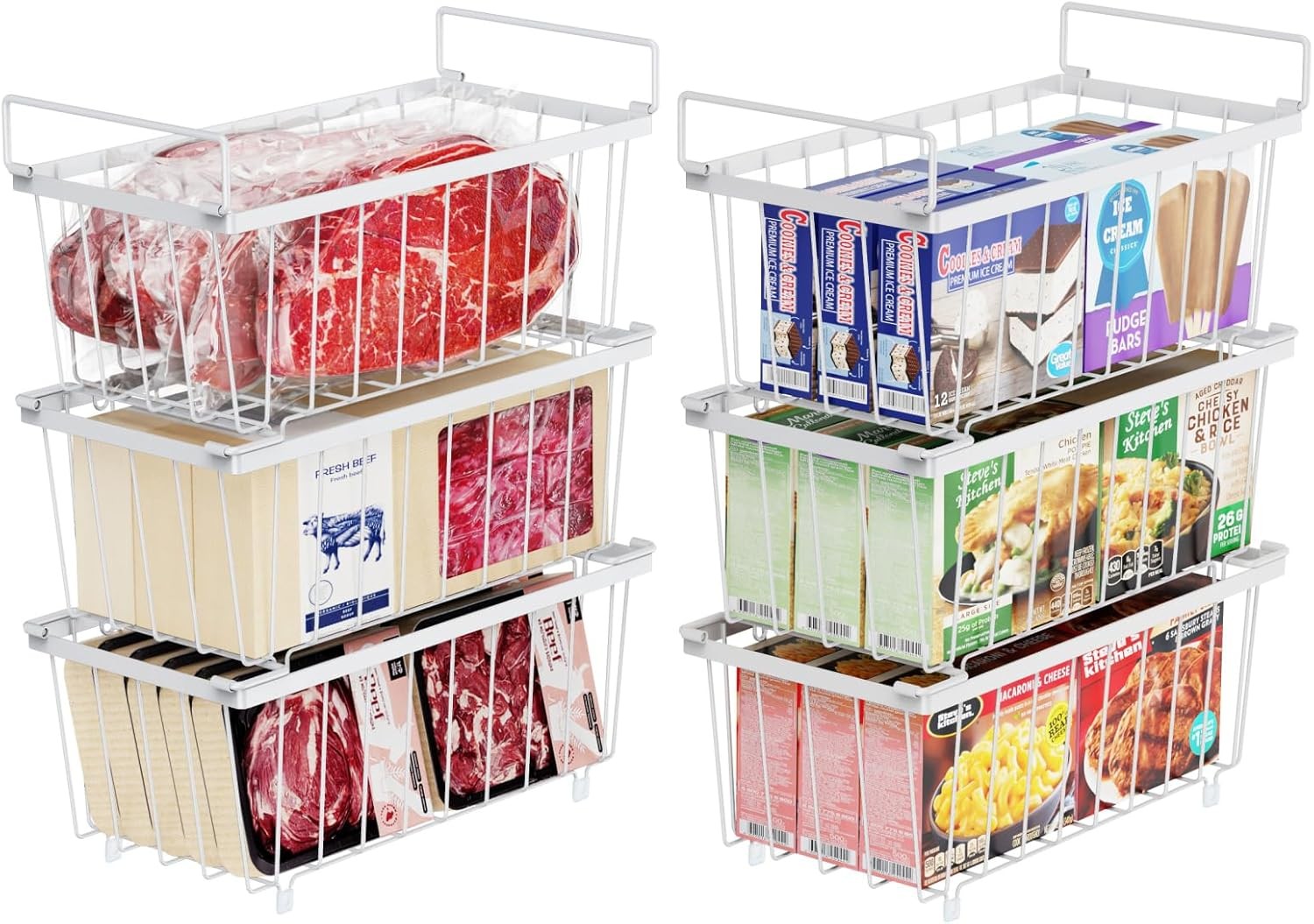 iSPECLE Chest Freezer Baskets - 6 Pack Stackable Wire Basket Add Space for 198L Deep Freezer Easy Get Food with Handles, Sort Food Air Circulation Keep Better Freshness, Black