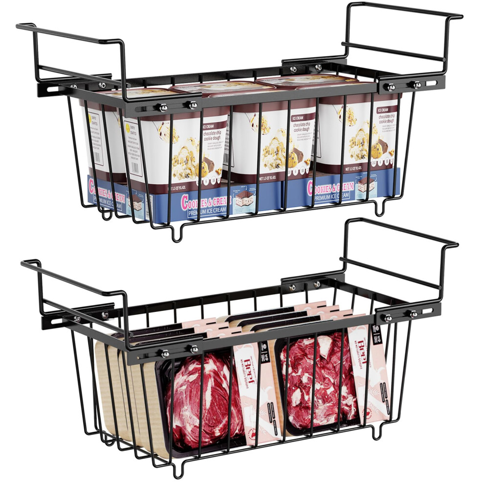 iSPECLE 2 Pack Freezer Organiser - Small Hanging Baskets for 198L Chest Freezer Add Space Storage Wire Baskets Easy to Sort and Get Foods from Bottom