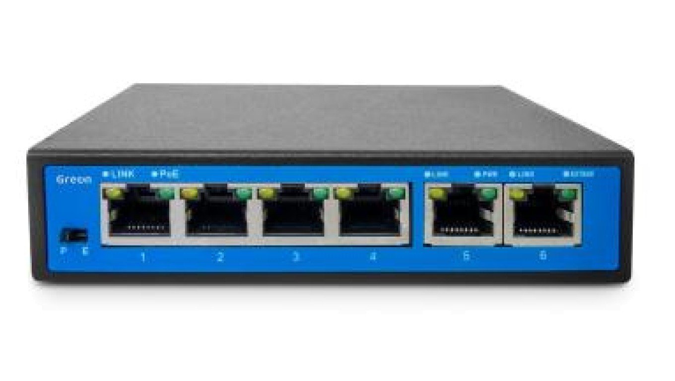 Niezarządzalny przełącznik (switch) 6xRJ45 - 4 porty RJ45 PoE+ 1Gb/s + 2 porty R