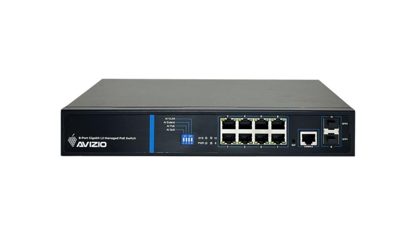 Zarządzalny przełącznik L2 (switch) 8 portów RJ45 PoE+ 1Gb/s + 2 porty SFP Uplin
