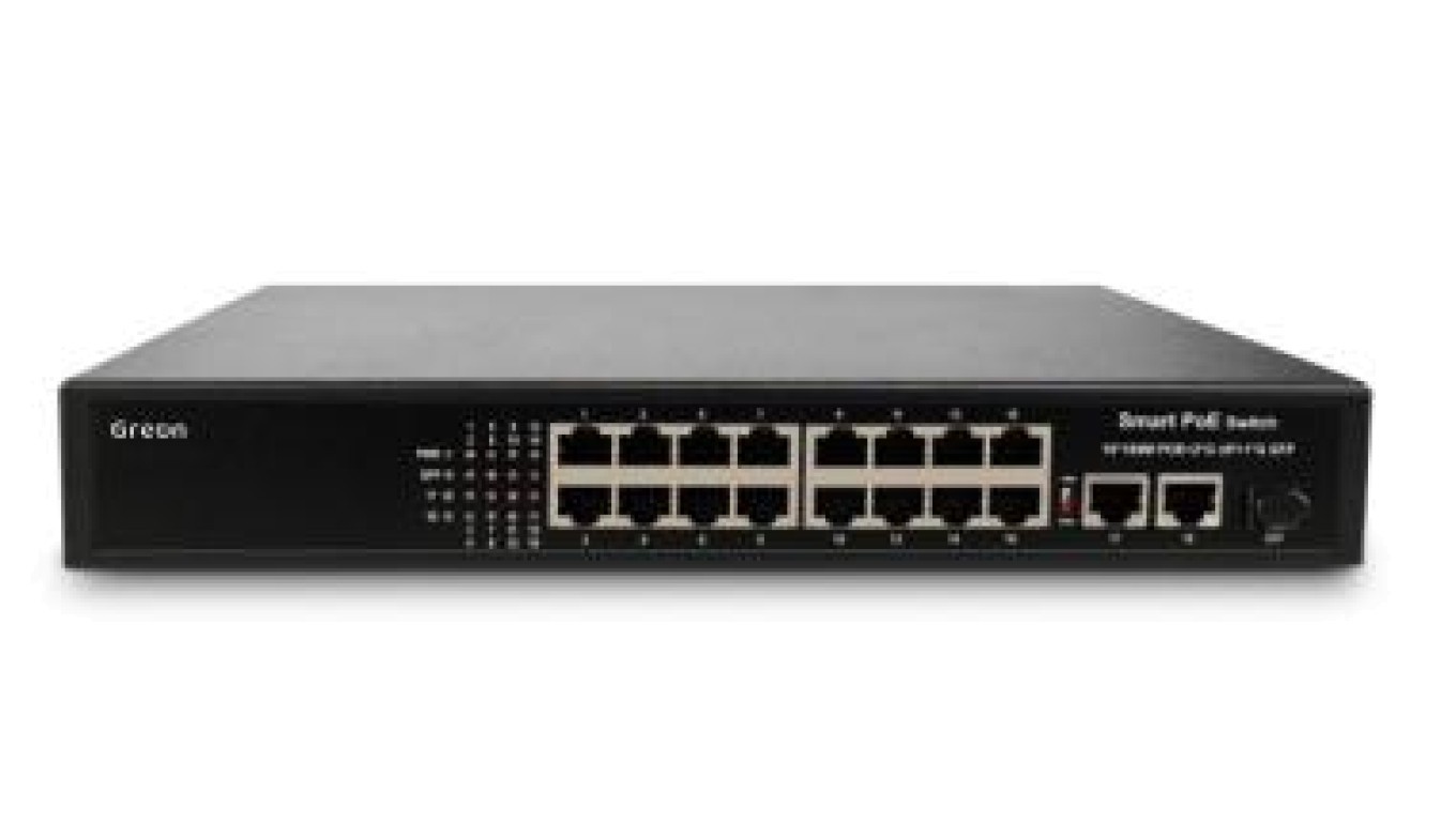 Switch PoE - 16 x PoE 100 Mb/s, 2 x Uplink 1 Gb/s, 1 x SFP, moc 300W, 30W na jed