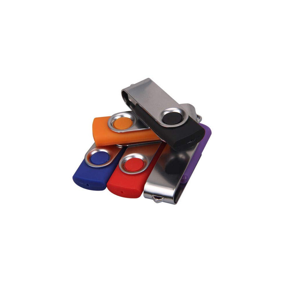 Exmapor 5 Pack USB Flash Drive 1GB Swivel Thumb Drives Key-Chain USB Stick(5 Mixed Color: Black, Red, Green, Blue, White)