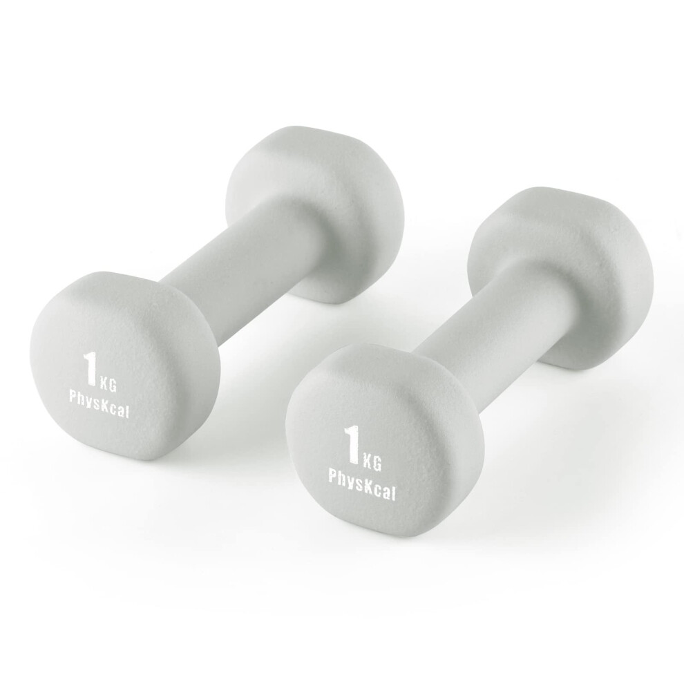 PhysKcal 1kg Dumbbells Set of 2 for Women, Kids & Senior, Mini Light Hand Weights for Pilates Cardio Boxing with Sweat-resistant Neoprene Coating