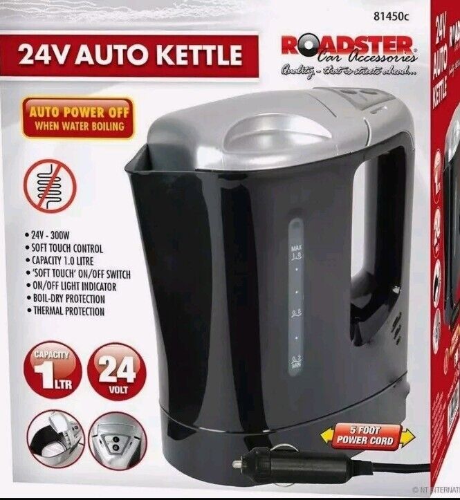 Roadster 24V Electric Travel Kettle - Black, 1L