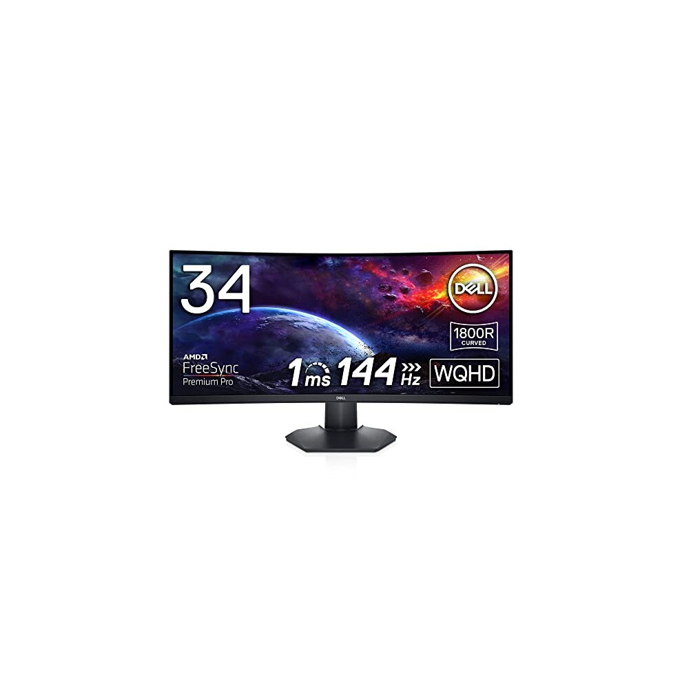 Dell S3422DWG 34 inch WQHD (3440x1440) 21:9 1800R Curved Gaming Monitor, 144Hz, VA, 1ms MPRT, AMD FreeSync Premium Pro, HDR 400, DisplayPort