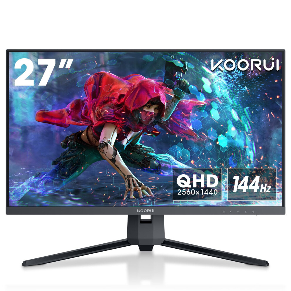 KOORUI 27 Inch Gaming Monitor 144 Hz, 2K QHD(2560x1440), MPRT 1ms, AdaptiveSync, DCI-P3 90%, SRGB100%, VESA Mountable 75x75mm, Eye Care, HDMI,